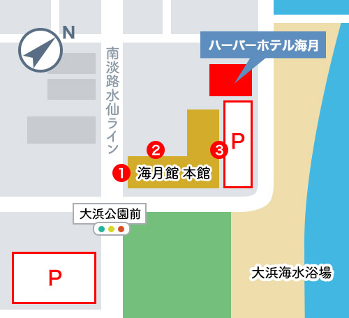 <住所>〒656-0022 兵庫県洲本市海岸通1-3-11淡路島中央スマートICから車で約15分。洲本高速バスセンターより徒歩5分。